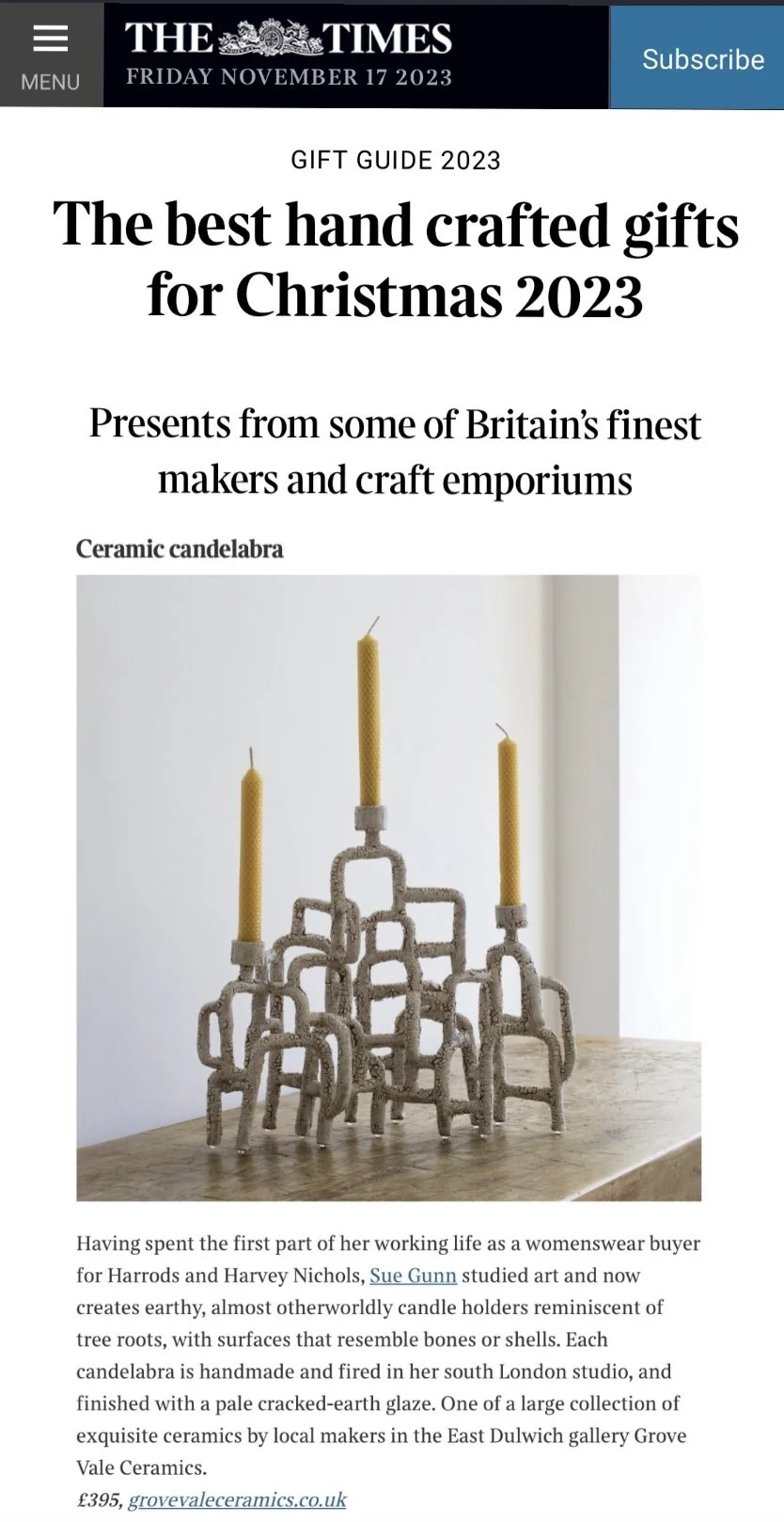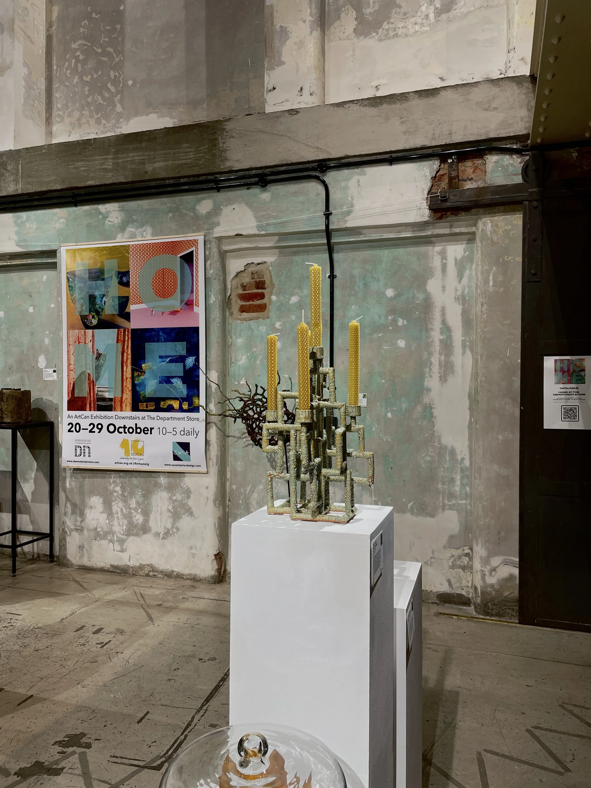 ArtCan celebrates its 10th Birthday with a multi-discipline exhibition at the Department Store Brixton. My Lichen Candelabra has been selected. The show is sponsored by Suna Interior Design and features the work of over 125 artists working in sculpture, painting, print, textiles, photography, mixed media and ceramics, all responding to the theme of ‘HOME’ and what that means to them.
