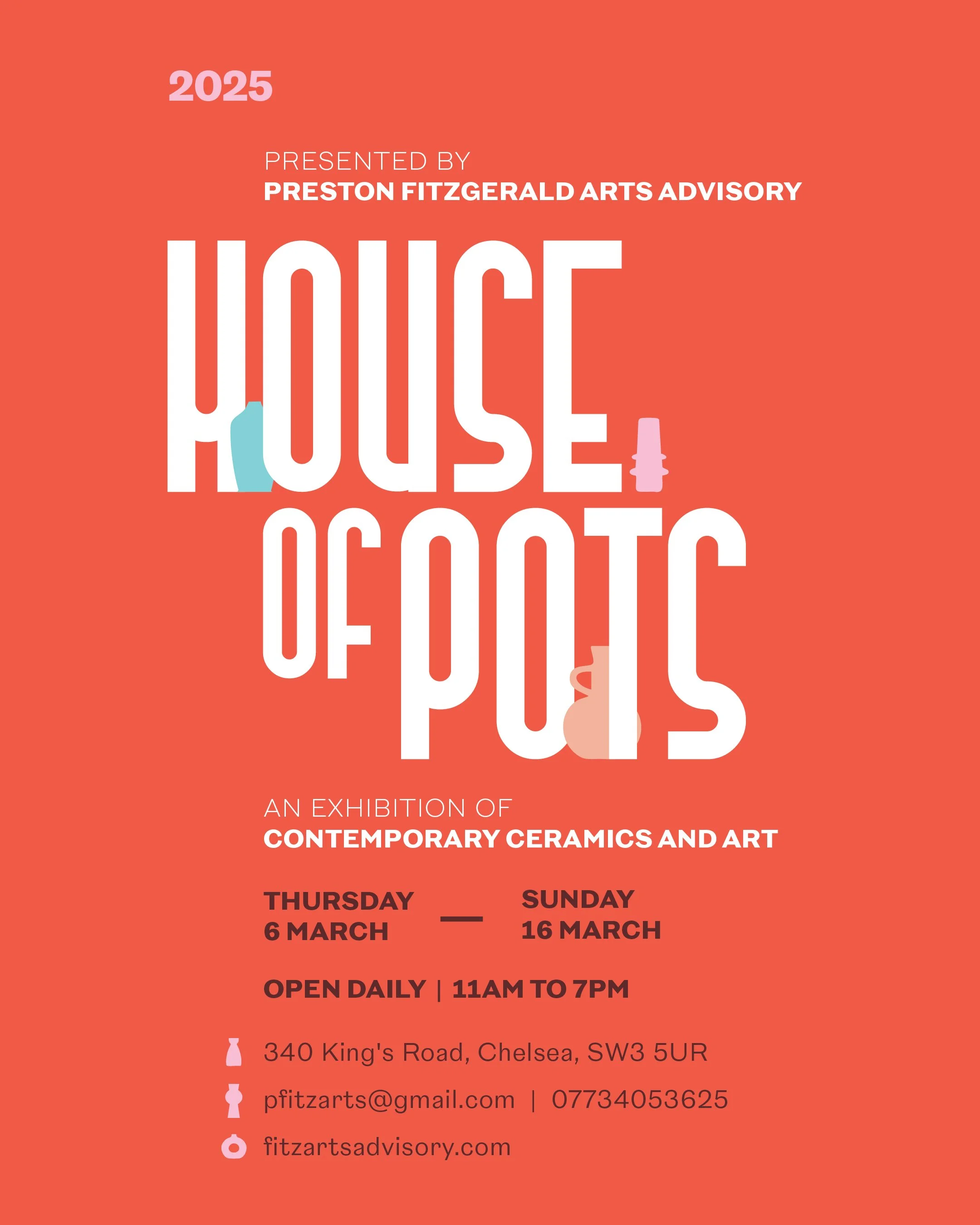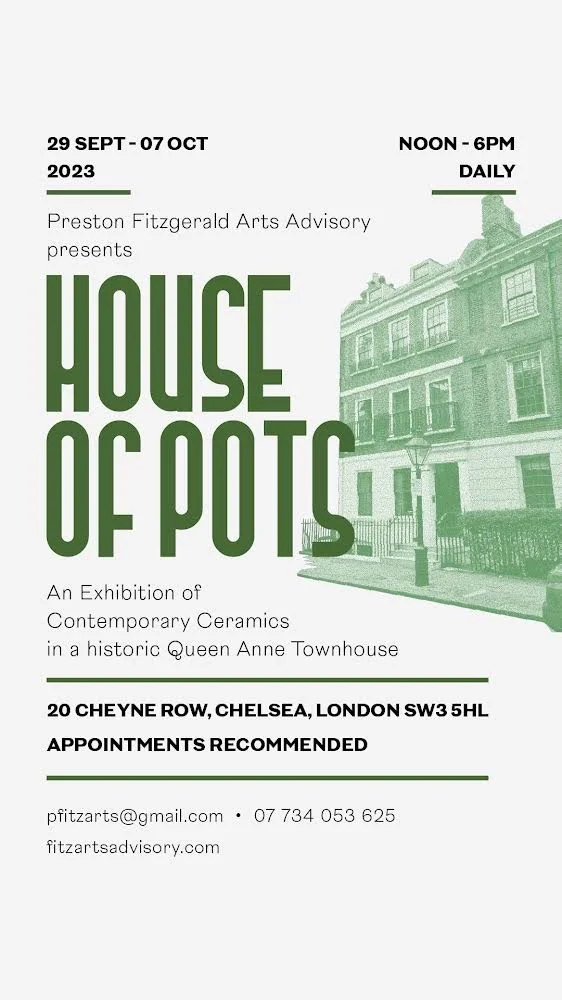 Once again I very privileged to have my work at The House of Pots. Curated by PRESTON FITZGERALD and set in an amazing Queen Anne town house, the exhibition features the work of over 30 ceramic artists.
