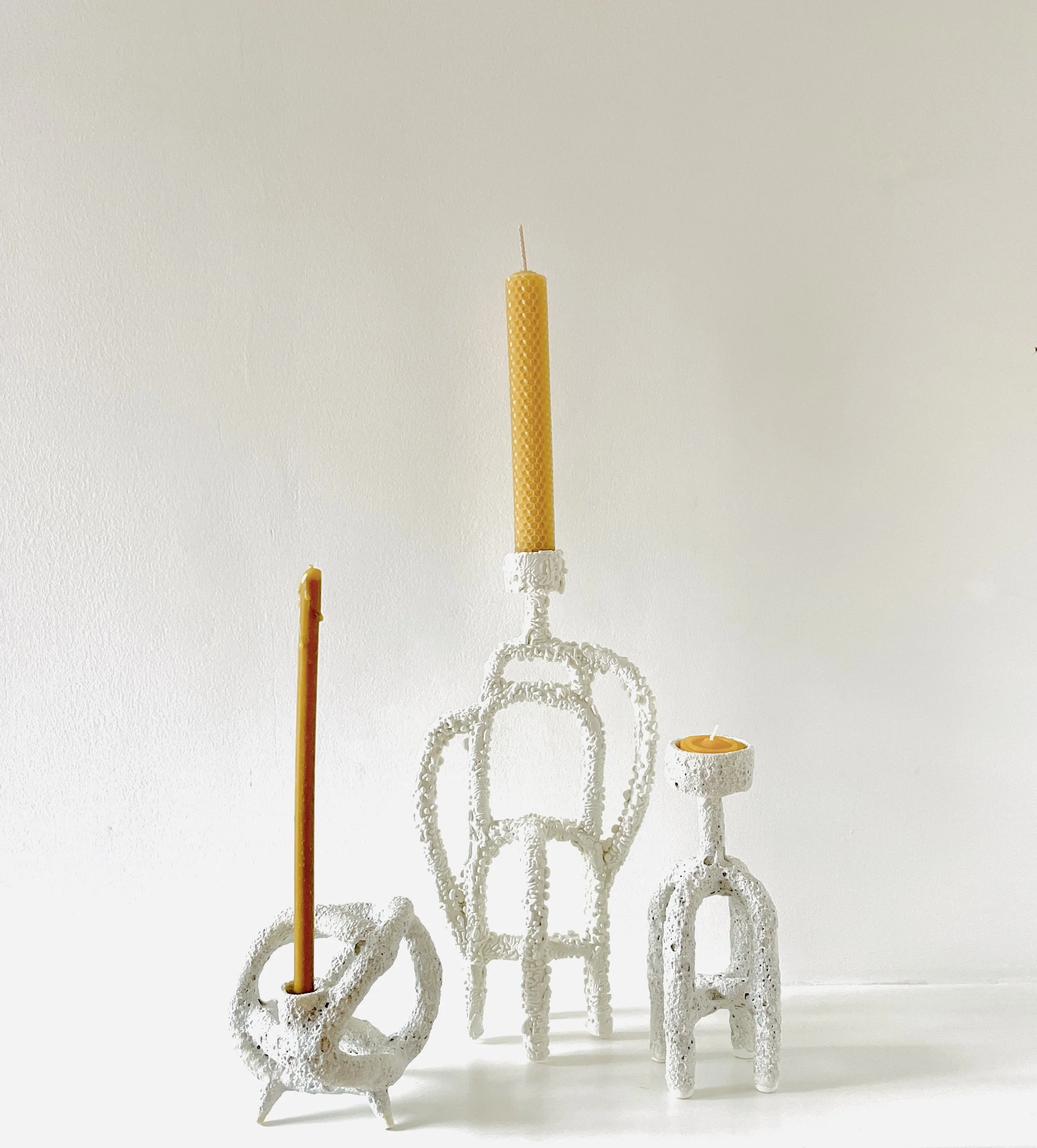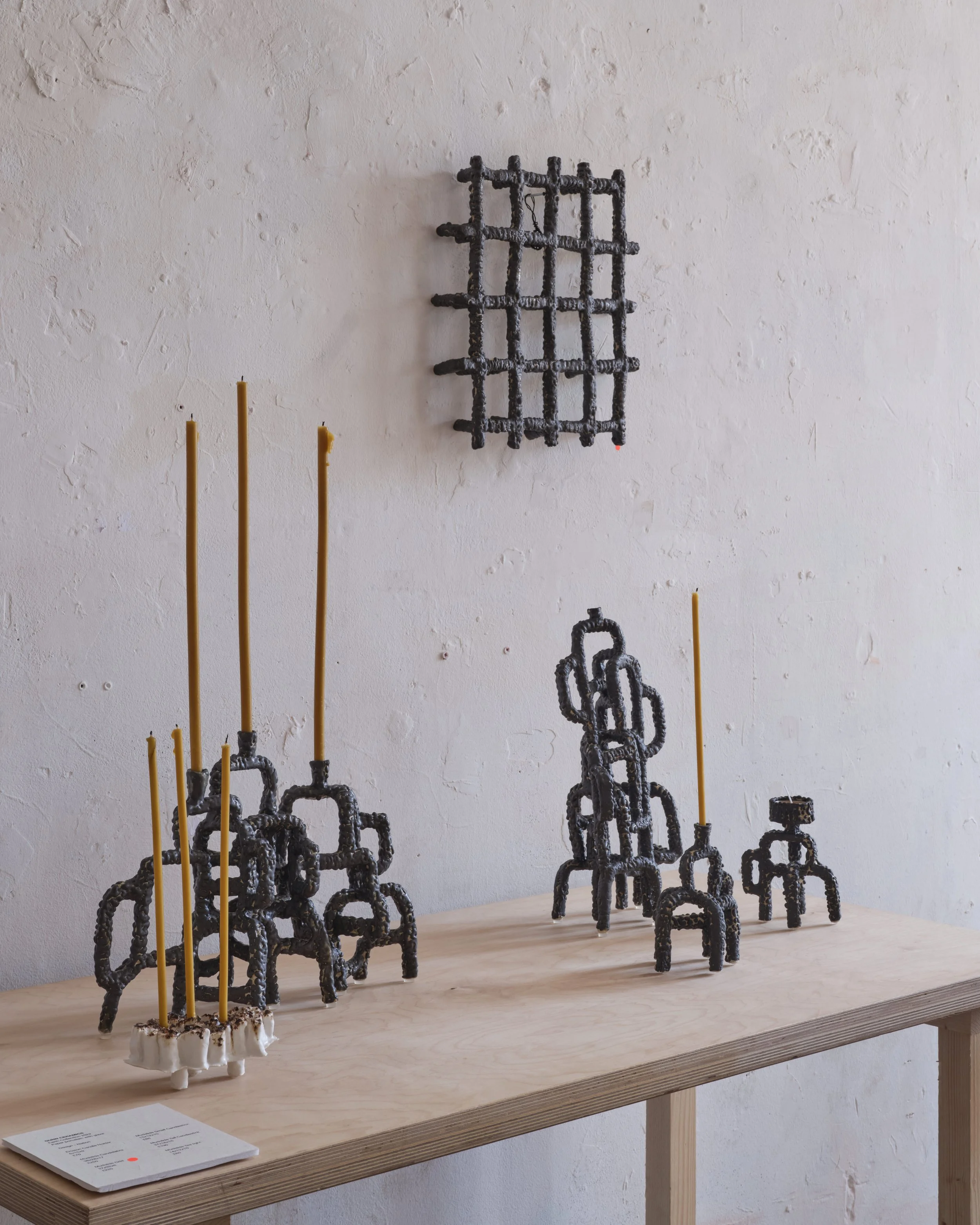 Three ceramic candleholders with cracked earth glaze have been selected for the Thrown Winter Exhibition.